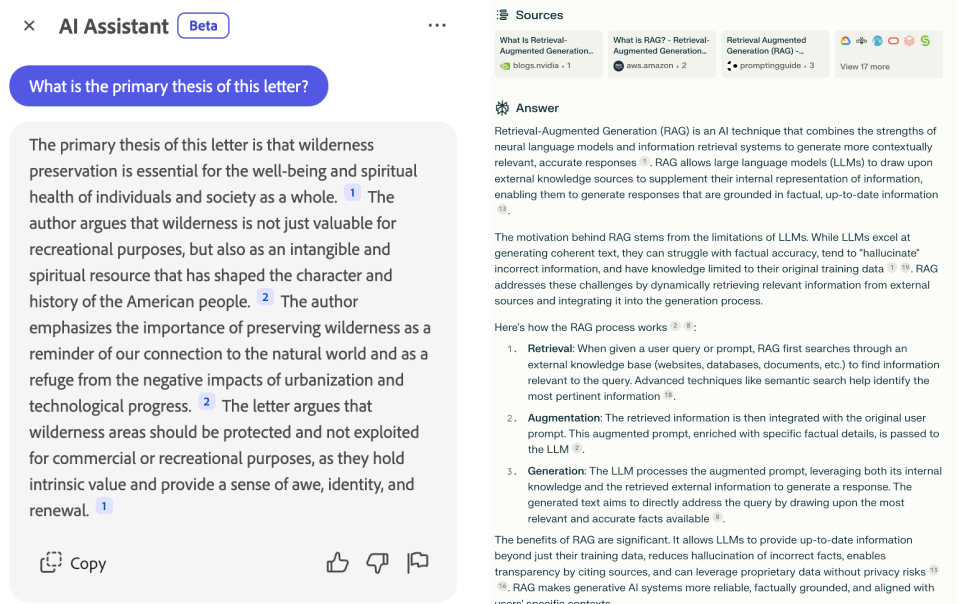 Now, instead of simply summarizing a topic or a primary source, AI can collect information from multiple sources and aggregate it into a single response. Citations help users trace the information contained in a response back to its original material.