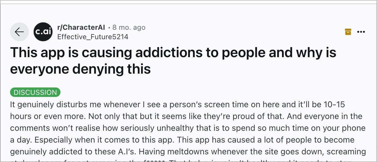 Character-AI, an AI virtual chatbot service has had several reports of users getting addicted to the virtual bots, even choosing to engage with them over their partners