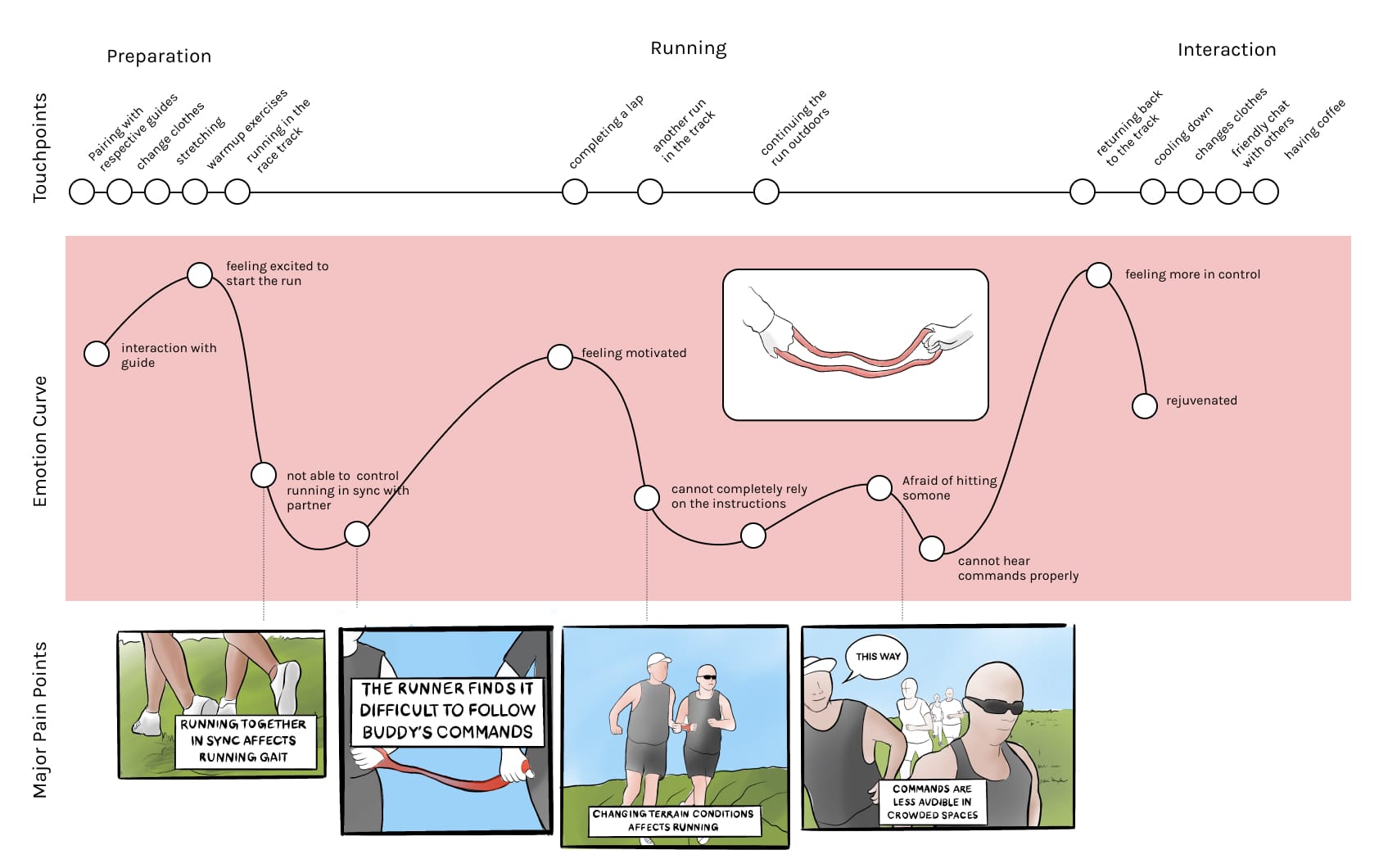- To conduct design tests in the form of weekly agile sprints to unravel insights from a very sensitive user group— deaf-blind runners