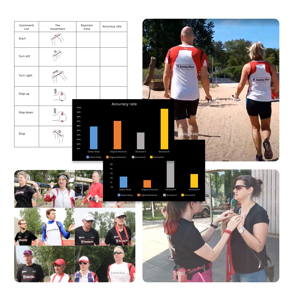 30 deaf and blind runners along with their guides participated in these design tests. To get qualitative insights from the deafblind runners, a translator helped us understand how they experienced using the device. Along with this, the quantitative results proved the effectiveness of the final device.