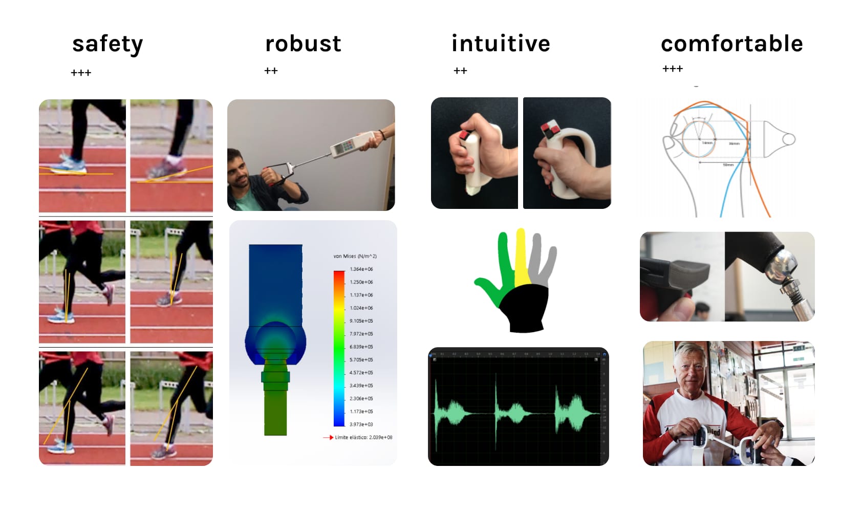 While running long distances, comfort is key and an ergonomic evaluation using (System Usability Scale) was performed to select the size, material and thickness of the handle.