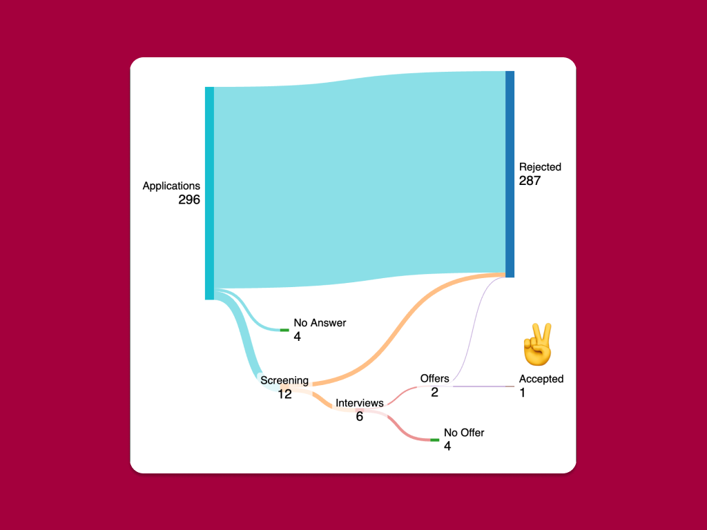 In doing so, I applied to more than 296 companies, out of which I received 12 screening calls from recruiters, 6 interview rounds with companies, 2 final rounds, and one final offer letter.