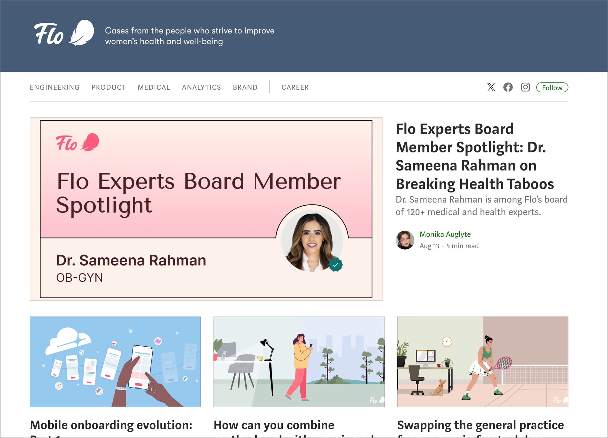 Flo Health has a well maintained Medium publication with various examples of their own internal work processes. This helps an outsider understand the shared context and language better.
