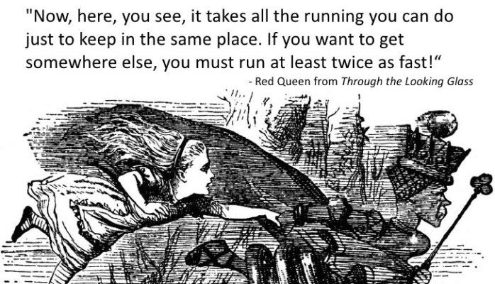 Ray Kurzweil aptly describes this phenomenon as the Red Queen Effect. As the tech singularity is approaching, the floor at which Alice is running is actually outrunning Alice herself.