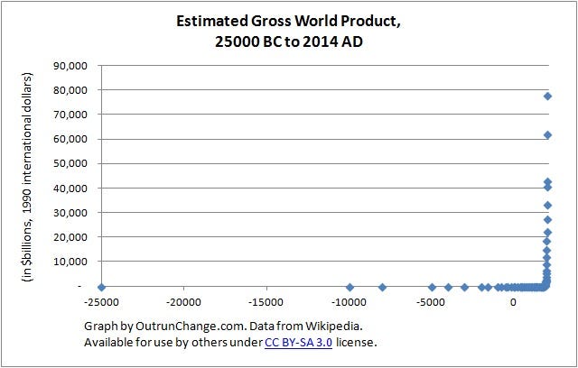 If we just chart out the Gross World Product from 10,000 BCE to 2019, it almost looks like this…