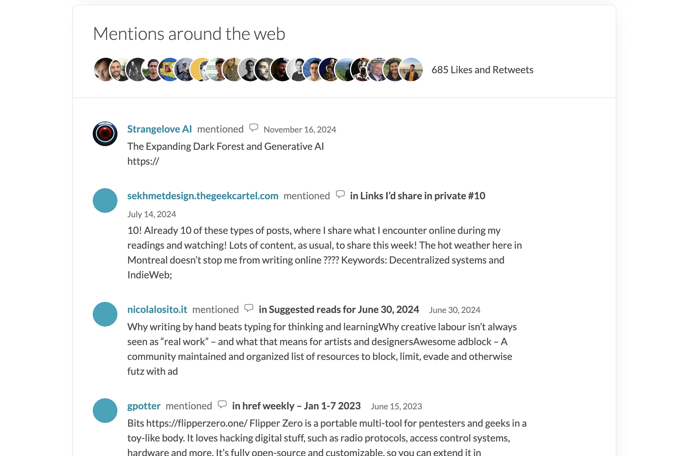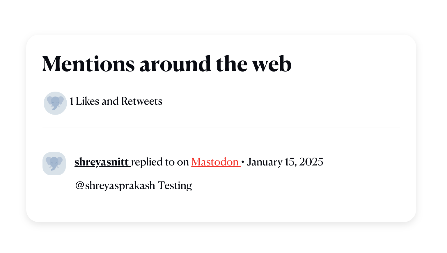 I am not internet-famous, and don’t really have much of internet mentions. This is a rudimentary hello-world demo of me, mentioning my own post on Mastodon 😂