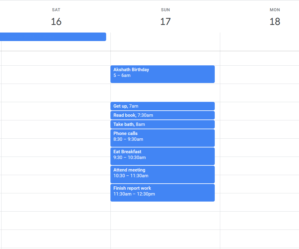 (Get up) - (Read Books) - (Take a shower) - (Phone calls) - (Eat Breakfast)
