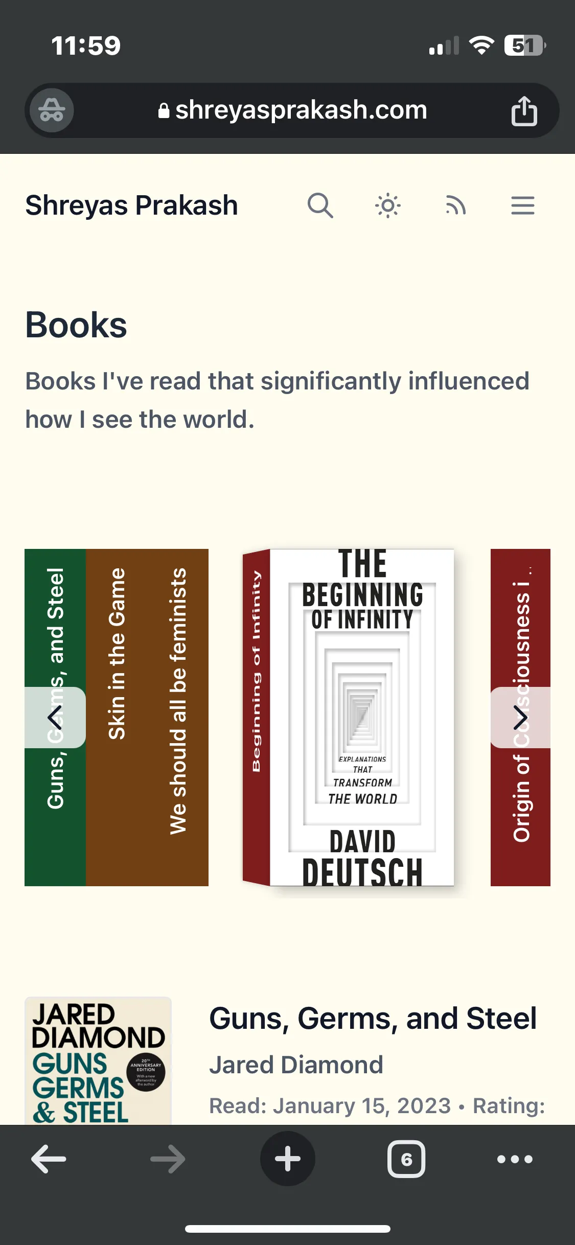 This desire to preserve this simple joy of connection through books led me to explore the concept of virtual bookshelves. I first stumbled upon Derek Sivers’ implementation and was drawn to his thoughtful collection of over 400 book notes and meta-commentaries spanning diverse themes. What stood out was how these notes went beyond standard reviews found on Goodreads or Amazon—they contained personal insights and deeper reflections that sparked genuine curiosity.